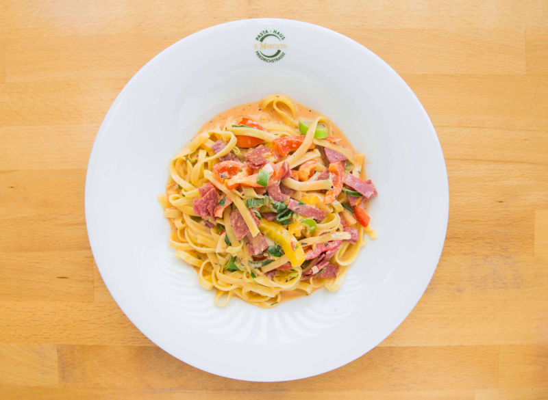 Penne all'Amatriciana (Speck & Zwiebel in Tomatensoße) 11,90 €